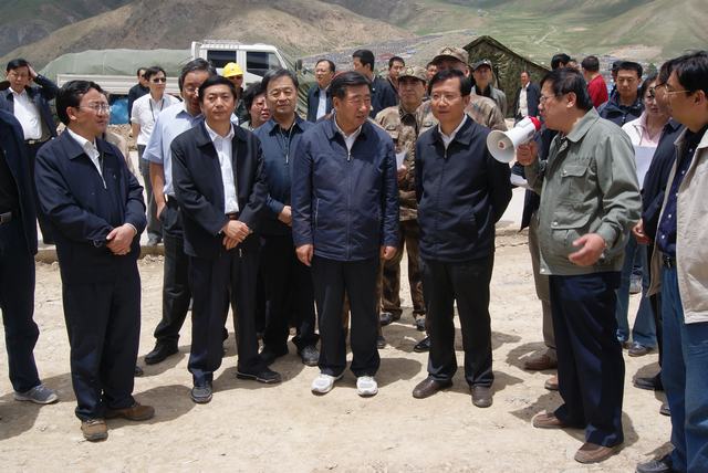 6月19日,中共中央政治局委員、國務院副總理、國務院抗震救災總指揮部總指揮回良玉率領(lǐng)相關(guān)部委領(lǐng)導,在青海省委書記強衛(wèi)、省長駱惠寧、副省長馬順青的陪同下,來到正在晝夜施工建設(shè)的青海物產(chǎn)玉樹建材物流集散中心,視察災后重建物資儲備情況和集散中心工程建設(shè)情況。集團總經(jīng)理王玉輝向中央領(lǐng)導和省領(lǐng)導詳細匯報了建材物流集散中心建設(shè)規(guī)模和鋼材、水泥、木材三大類物資收儲情況。同時表示,青海省物產(chǎn)集團總公司將一如既往,全力以赴支援玉樹災后重建,與各路建設(shè)大軍一道,為建設(shè)美好綠色新玉樹貢獻力量。聽完匯報,回良玉副總理非常高興,并做出重要指示,要做好統(tǒng)籌組織建材物資的采購和調(diào)運工作,努力保障供應,確保質(zhì)量,降低成本。回良玉副總理及省領(lǐng)導與集團領(lǐng)導、工作人員合影留念。